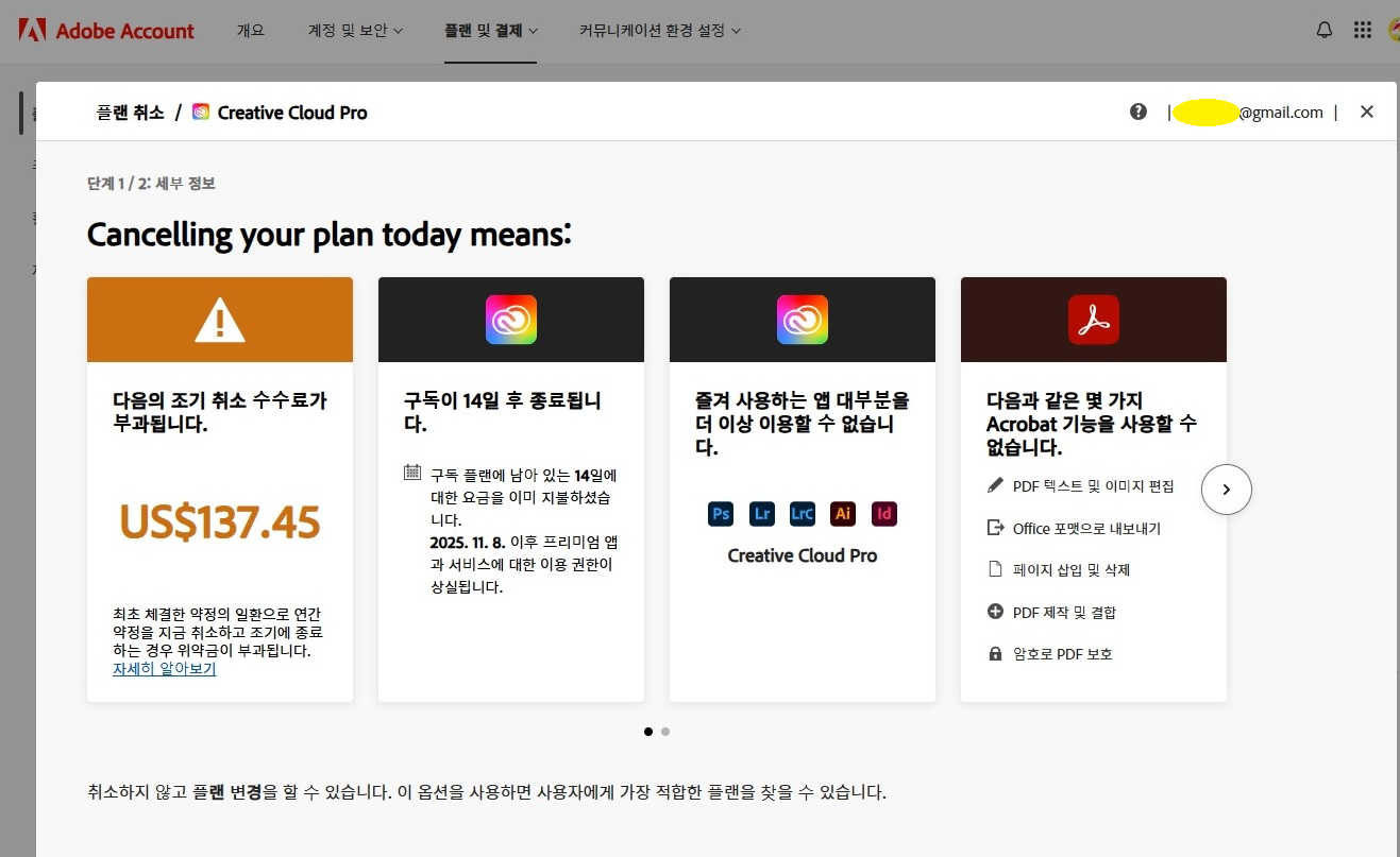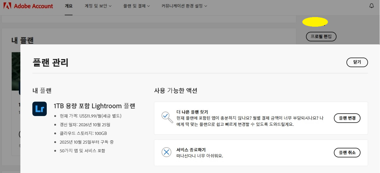 (이렇게라도 취소할 수 있게 열어둔 Adobe 님께 고맙다고 해야하나요 ㅠ)