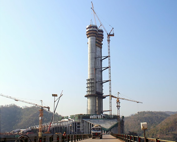 5. 크레인으로 들어올려 콘크리트 기둥에 붙여요.